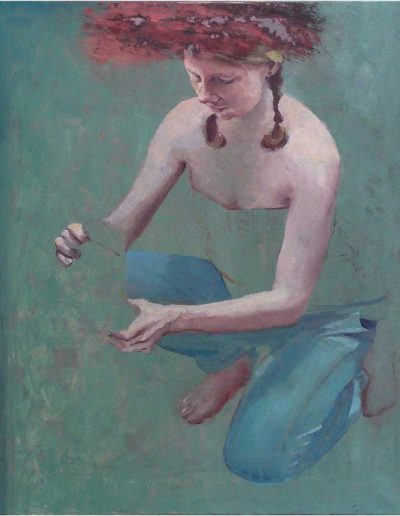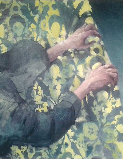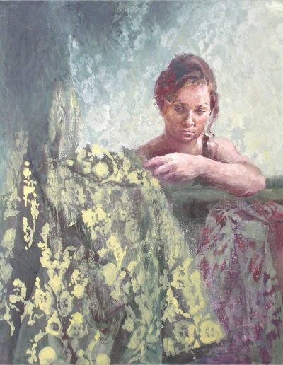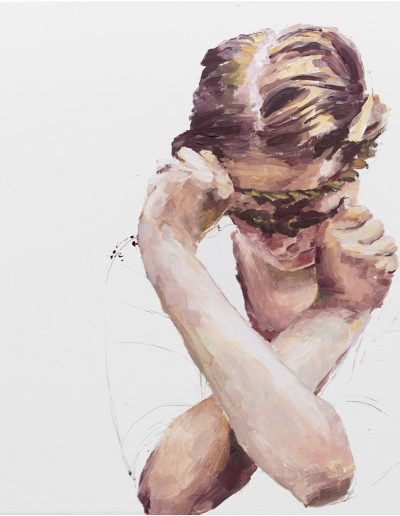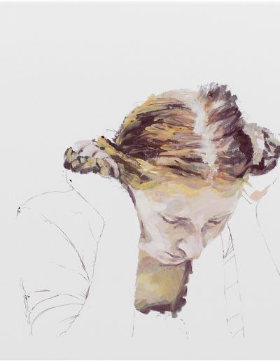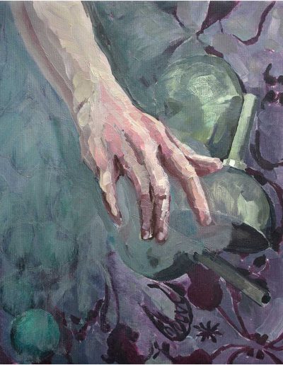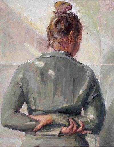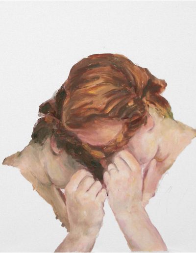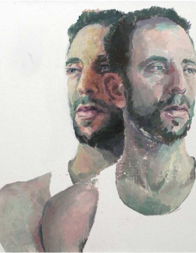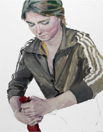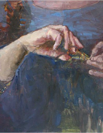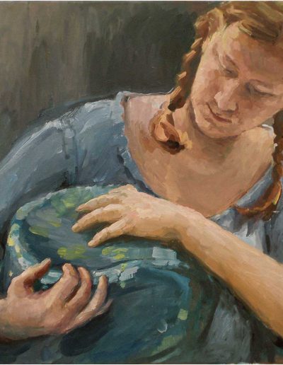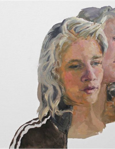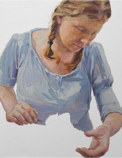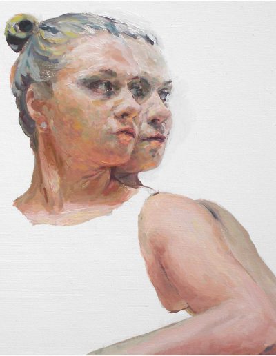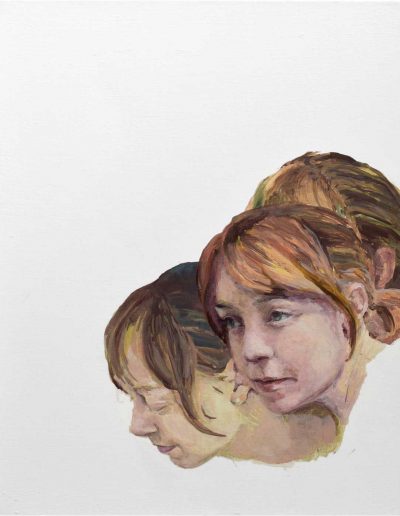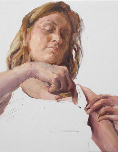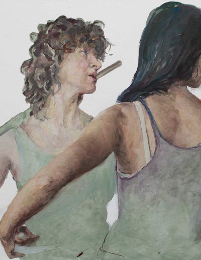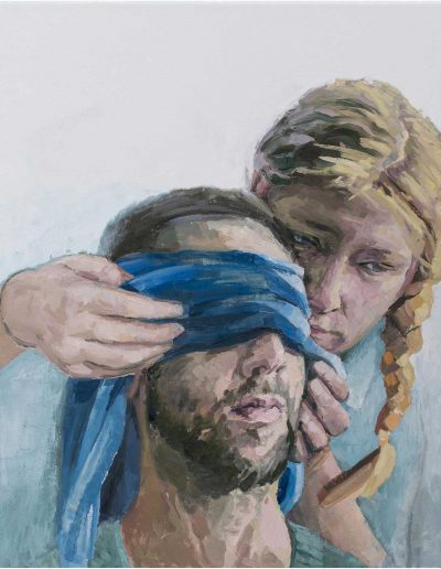 Joana und Heleen probieren für Judith, nach Artemisia Gentileschi, Öl/Lwd., 155 x 120 cm, 2019