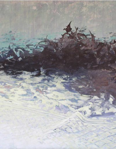 Trudi und Helene proben für Sintflut, nach Annibale Carracci, blaue Pastellkreide auf Zeichenkarton, 170 × 150 cm, 2021